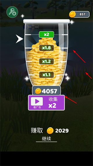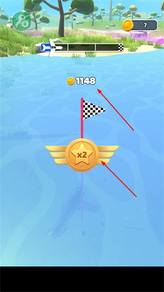 3、飛行結(jié)束后收集金幣,可通過倍數(shù)獎(jiǎng)勵(lì)或觀看廣告翻倍收益,快速積累金幣資源。