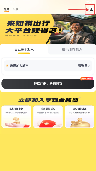 1、打開出行類應用,點擊右上角個人中心圖標,進入個人中心頁面。