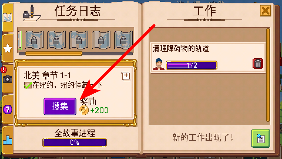 1、查看任務(wù)日志,搜集像在紐約,紐約停靠一下這類任務(wù),完成后能獲取金幣等獎(jiǎng)勵(lì),推動(dòng)故事進(jìn)程,也為后續(xù)經(jīng)營(yíng)積累資源。