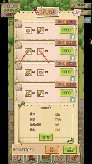 3、在貨運(yùn)站界面,將制作好的食品進(jìn)行運(yùn)輸,獲取金幣收益,運(yùn)輸收益可通過升級(jí)貨運(yùn)站模塊提升。