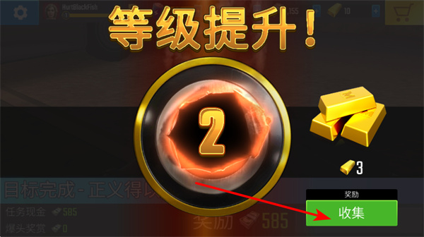 3、領(lǐng)取等級獎勵,點(diǎn)擊收集按鈕,領(lǐng)取等級提升至2級的獎勵,積累游戲資源,用于后續(xù)的裝備升級或任務(wù)推進(jìn)。