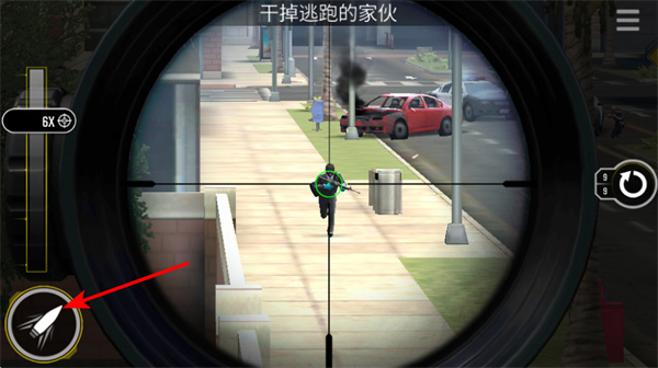 4、完成追擊任務(wù),瞄準(zhǔn)逃跑的目標(biāo),點(diǎn)擊射擊按鈕,發(fā)射子彈,干掉逃跑的家伙,完成追擊任務(wù),推進(jìn)游戲劇情。
