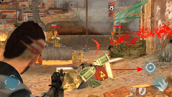 3、精準瞄準射擊,點擊瞄準按鈕,精準瞄準敵人,發(fā)射子彈,對敵人造成致命傷害,提升戰(zhàn)斗的命中率。