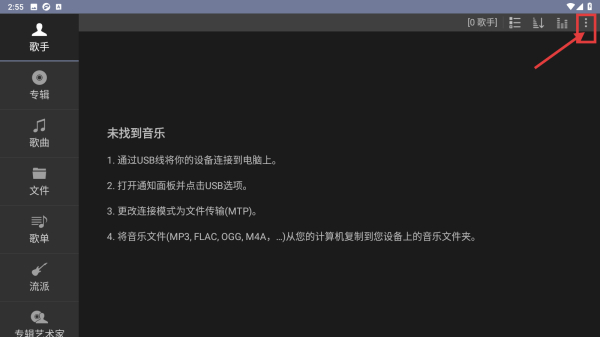 1、打開音樂類應(yīng)用,點擊右上角菜單按鈕,展開功能菜單。