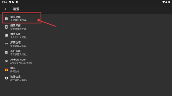 3、在設(shè)置界面,點擊瀏覽界面選項,進入瀏覽界面設(shè)置頁面。