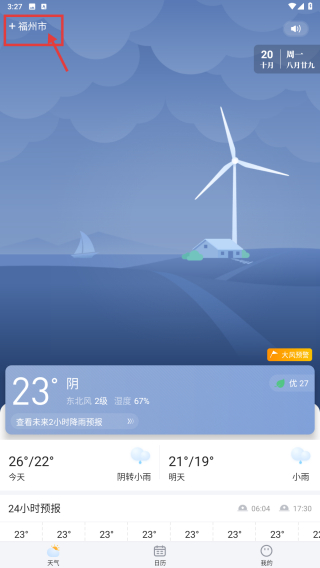 1、打開天氣類應用,點擊左上角城市名稱區(qū)域,進入城市管理頁面。