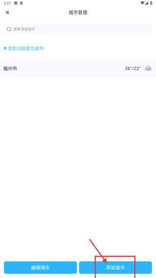 2、在城市管理頁面,點擊添加城市按鈕,進入添加城市界面。