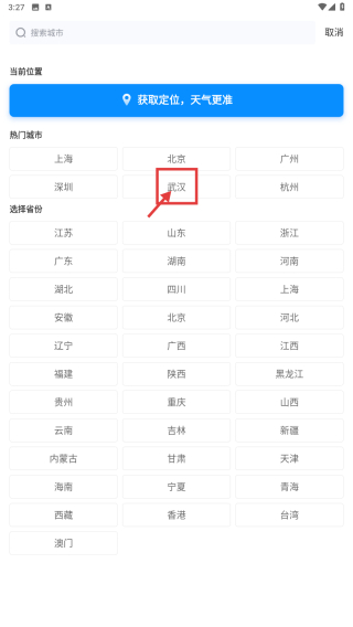 3、在添加城市界面,選擇武漢作為要添加的城市。