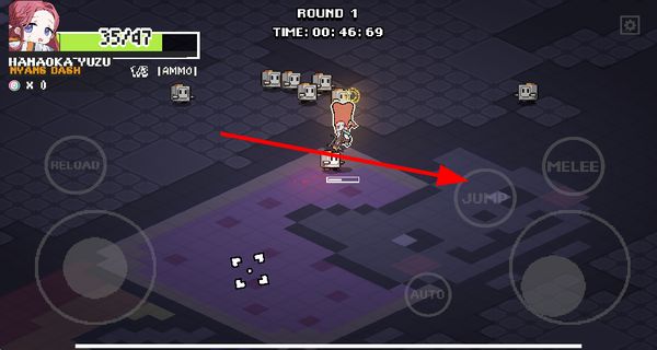 2、在游戲中,點(diǎn)擊JUMP按鈕可操控角色跳躍,躲避敵人攻擊或到達(dá)特定位置。