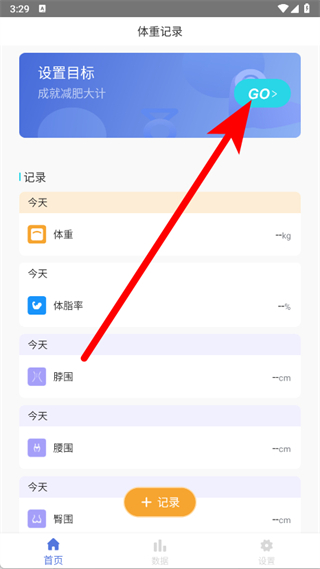 2、在體重記錄頁(yè)面,點(diǎn)擊設(shè)置目標(biāo)區(qū)域的GO按鈕。