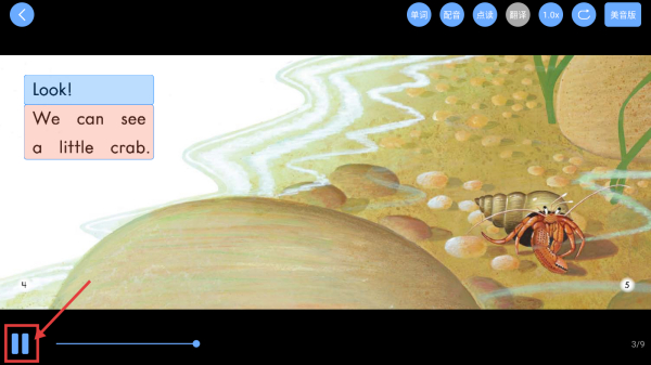 3、在閱讀頁(yè)面,可點(diǎn)擊左下角的暫停/播放按鈕控制繪本的播放狀態(tài)。