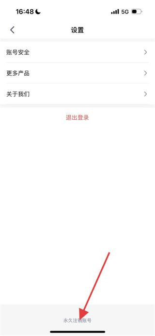 3、在設置頁面,點擊永久注銷賬號,進入注銷賬號頁面。