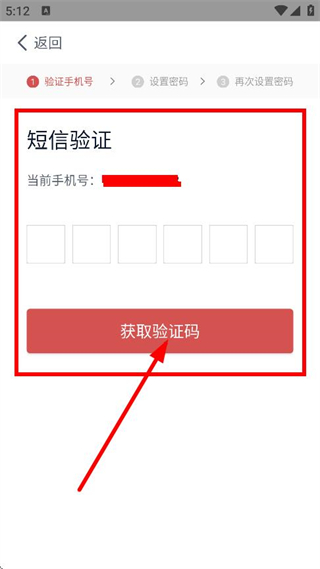 3、點擊獲取驗證碼,輸入收到的驗證碼,進入設(shè)置密碼頁面。