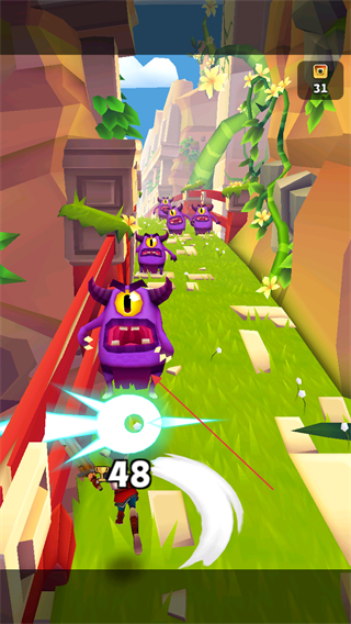 在傳統(tǒng)跑酷躲避障礙基礎(chǔ)上,加入擊殺敵人玩法,可通過點擊或滑動釋放攻擊動作,戰(zhàn)斗與跑酷節(jié)奏銜接流暢。