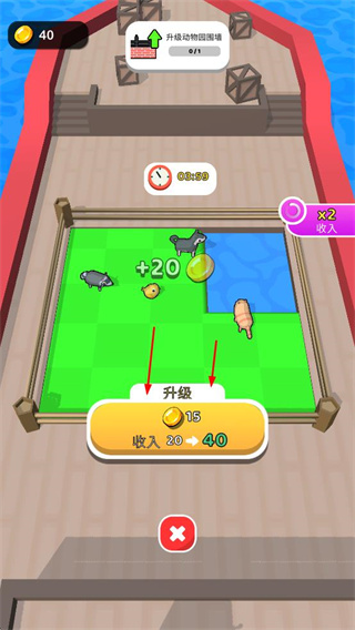 4、升級動物圍欄,消耗金幣提升收入,同時完成升級動物圍欄任務,優(yōu)化動物管理和資源獲取