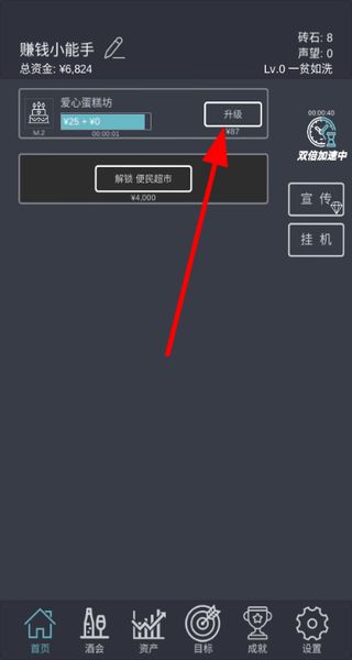 1、可以對店鋪進行升級,升級后能提升店鋪的賺錢能力,還能解鎖新的店鋪,拓展賺錢渠道。