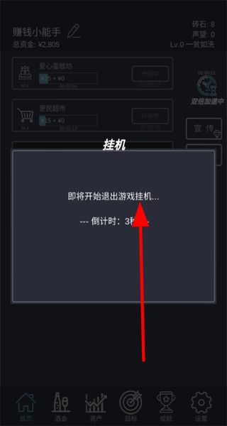 2、點擊掛機按鈕,會進入倒計時,倒計時結(jié)束后開始退出游戲掛機,掛機時也能獲得收益。
