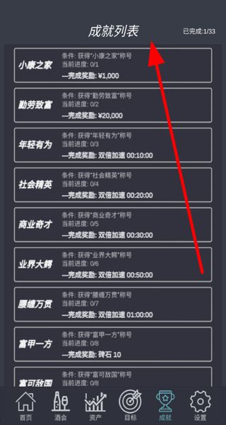 3、可以查看成就列表,了解獲取各類(lèi)成就的條件,朝著成就目標(biāo)努力,還能獲得獎(jiǎng)勵(lì)。