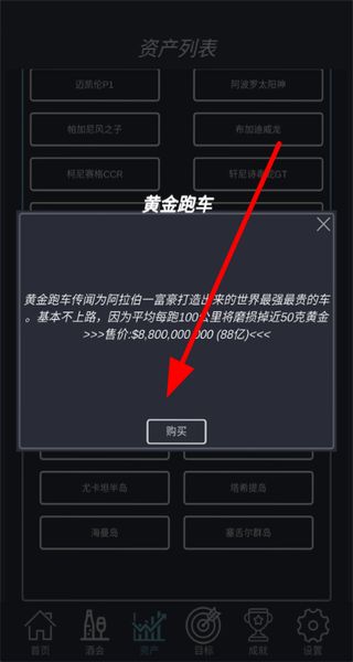 3、還能購買特殊資產(chǎn),如黃金跑車,這些特殊資產(chǎn)也能為賺錢帶來幫助,提升整體收益。