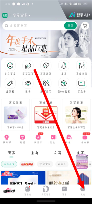 1、打開新氧醫(yī)美,點(diǎn)擊底部導(dǎo)航欄最右側(cè)的我的。