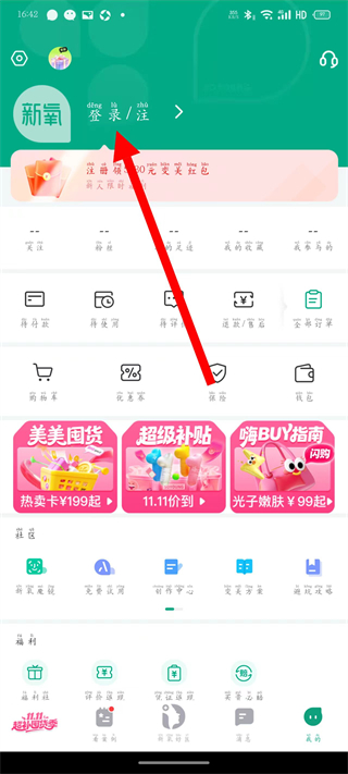 2、進(jìn)入我的頁(yè)面后,點(diǎn)擊登錄注冊(cè)選項(xiàng),進(jìn)入登錄頁(yè)面。