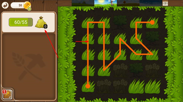 1、規(guī)劃路徑收割草地,收集草料資源,積累資源用于農場建設。