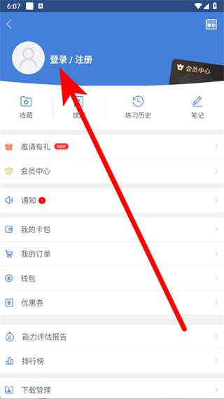 2、進入個人頁面后,點擊登錄注冊選項,進入登錄頁面。