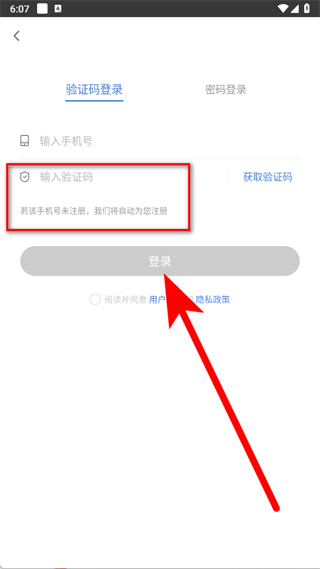 4、輸入收到的驗證碼,勾選同意后,點擊登錄,完成注冊。