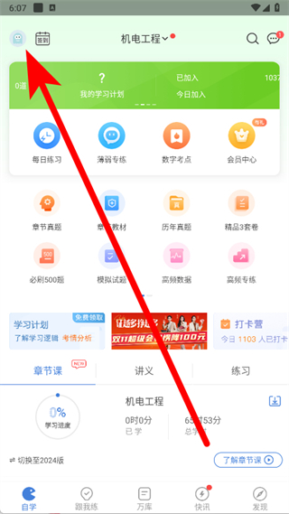 1、打開二建萬題庫,點擊頁面左上角的頭像圖標。