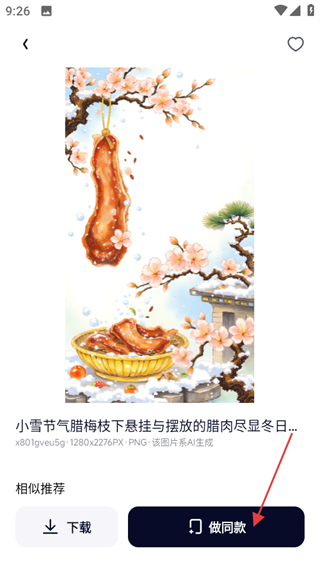 3、在圖片詳情頁(yè)面,點(diǎn)擊做同款,可進(jìn)行同款圖片制作。