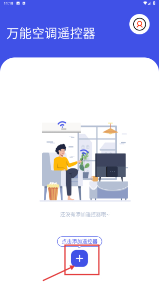 1、打開萬能空調(diào)遙控器應(yīng)用,點(diǎn)擊底部+按鈕,進(jìn)入遙控器類型選擇界面。