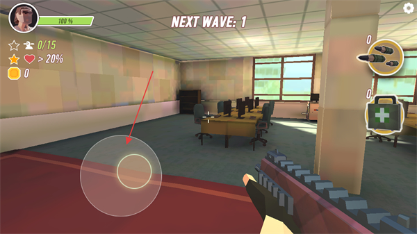 2、使用屏幕左下方的虛擬搖桿控制角色移動,在辦公室內(nèi)調(diào)整位置,做好迎戰(zhàn)準(zhǔn)備。