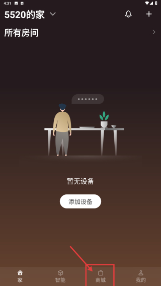 1、打開智能家居應(yīng)用,點(diǎn)擊底部商城選項(xiàng),進(jìn)入智家365商城頁(yè)面。