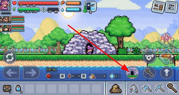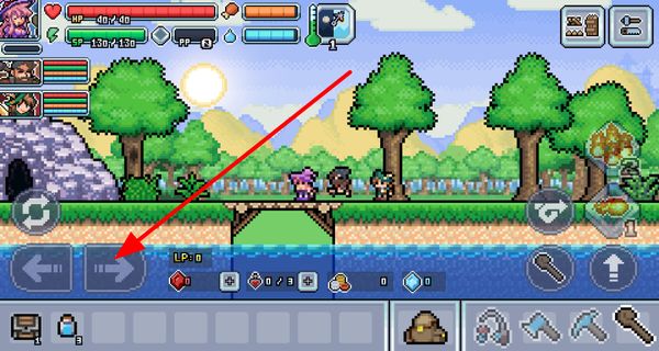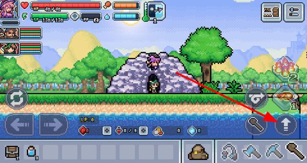 4、在場(chǎng)景中,點(diǎn)擊向上箭頭按鈕可讓角色跳躍,能越過(guò)障礙,還可跳到高處的平臺(tái),比如礦洞上方的平臺(tái),拓展探索范圍。