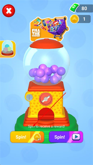 3、找到扭蛋機(jī)界面,點(diǎn)擊Spin按鈕,消耗一塊金幣,轉(zhuǎn)動扭蛋機(jī)獲取物品獎勵。