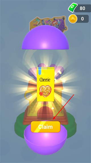 4、扭蛋機(jī)獲得物品后,點(diǎn)擊Claim按鈕領(lǐng)取物品,將物品整理擺放到冰箱中,完成冰箱的填充與陳列。