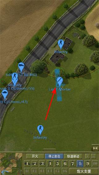 2、遇到Light Mortar單位時(shí),點(diǎn)擊該單位并部署至戰(zhàn)略點(diǎn)位,迫擊炮可提供遠(yuǎn)程火力支援,部署時(shí)優(yōu)先選擇能覆蓋敵方路徑的區(qū)域。