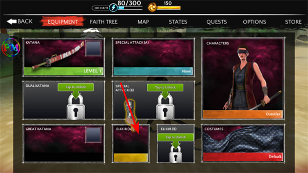 1、進(jìn)入游戲裝備界面后,點(diǎn)擊ELIXIR (I)選項(xiàng),這是解鎖強(qiáng)力藥劑的關(guān)鍵操作,準(zhǔn)確點(diǎn)擊可解鎖DivineElixir藥劑,為后續(xù)高難戰(zhàn)斗提供戰(zhàn)力支撐。