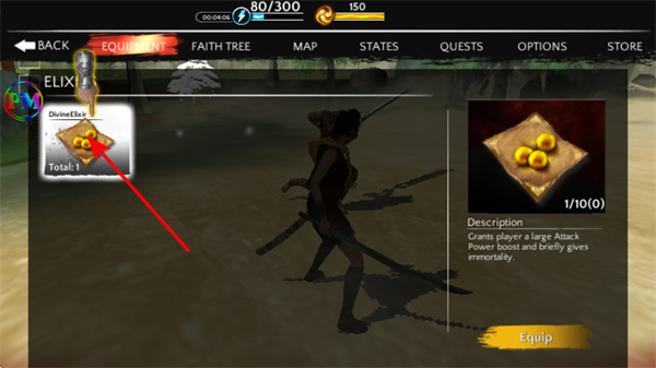 2、戰(zhàn)斗前或血線(xiàn)危急時(shí),點(diǎn)擊DivineElixir藥劑圖標(biāo),這是使用增益道具的核心步驟,可提升攻擊力并獲得短暫無(wú)敵,敵人前及時(shí)使用以強(qiáng)化戰(zhàn)力。
