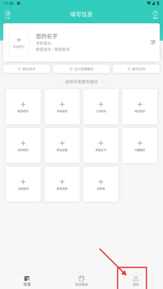 1、打開信息填寫類應用,點擊底部我的選項,進入個人中心頁面。