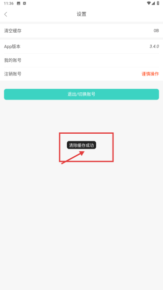 4、清理完成后,界面會提示清除緩存成功,完成APP緩存的清理。