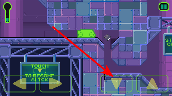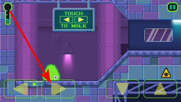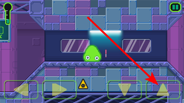 1、界面下方有方向按鍵,左側(cè)按鍵控制粘液左右移動(dòng),右側(cè)按鍵控制跳躍,通過點(diǎn)擊這些按鍵操控粘液在場景中移動(dòng),躲避尖刺、深淵等障礙。
