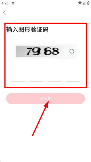 3、在輸入圖形驗證碼頁面,輸入圖形驗證碼后,點擊下一步。