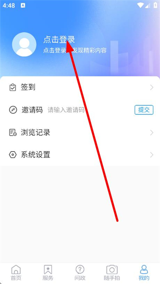 2、在個(gè)人中心頁面,點(diǎn)擊點(diǎn)擊登錄,進(jìn)入用戶登錄頁面。