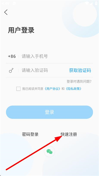 3、在用戶登錄頁面,點(diǎn)擊快速注冊,進(jìn)入用戶注冊頁面。
