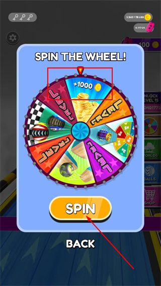 4、點(diǎn)擊SPIN按鈕轉(zhuǎn)動(dòng)轉(zhuǎn)盤,可獲得金幣、道具等獎(jiǎng)勵(lì),助力游戲進(jìn)程。