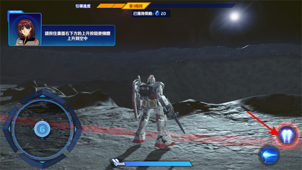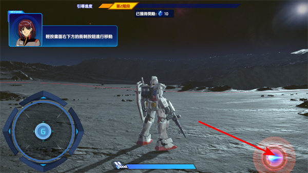 2、在引導(dǎo)階段,操控左側(cè)搖桿進(jìn)行移動,這是控制高達(dá)移動的核心操作,通過搖桿可調(diào)整高達(dá)在場景中的位置,完成移動任務(wù)。