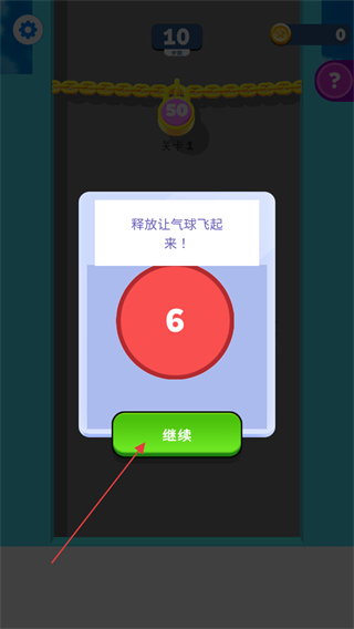 1、點擊繼續(xù)按鈕進入游戲,釋放氣球使其飛起。