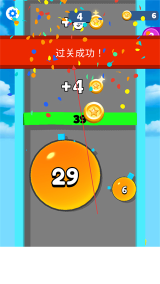 3、通過合并氣球積累分數(shù),成功通過關卡后可獲得金幣獎勵。