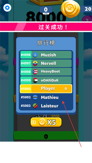 4、不斷挑戰(zhàn)關卡,提升分數(shù),爭取在排行榜上獲得更高名次。